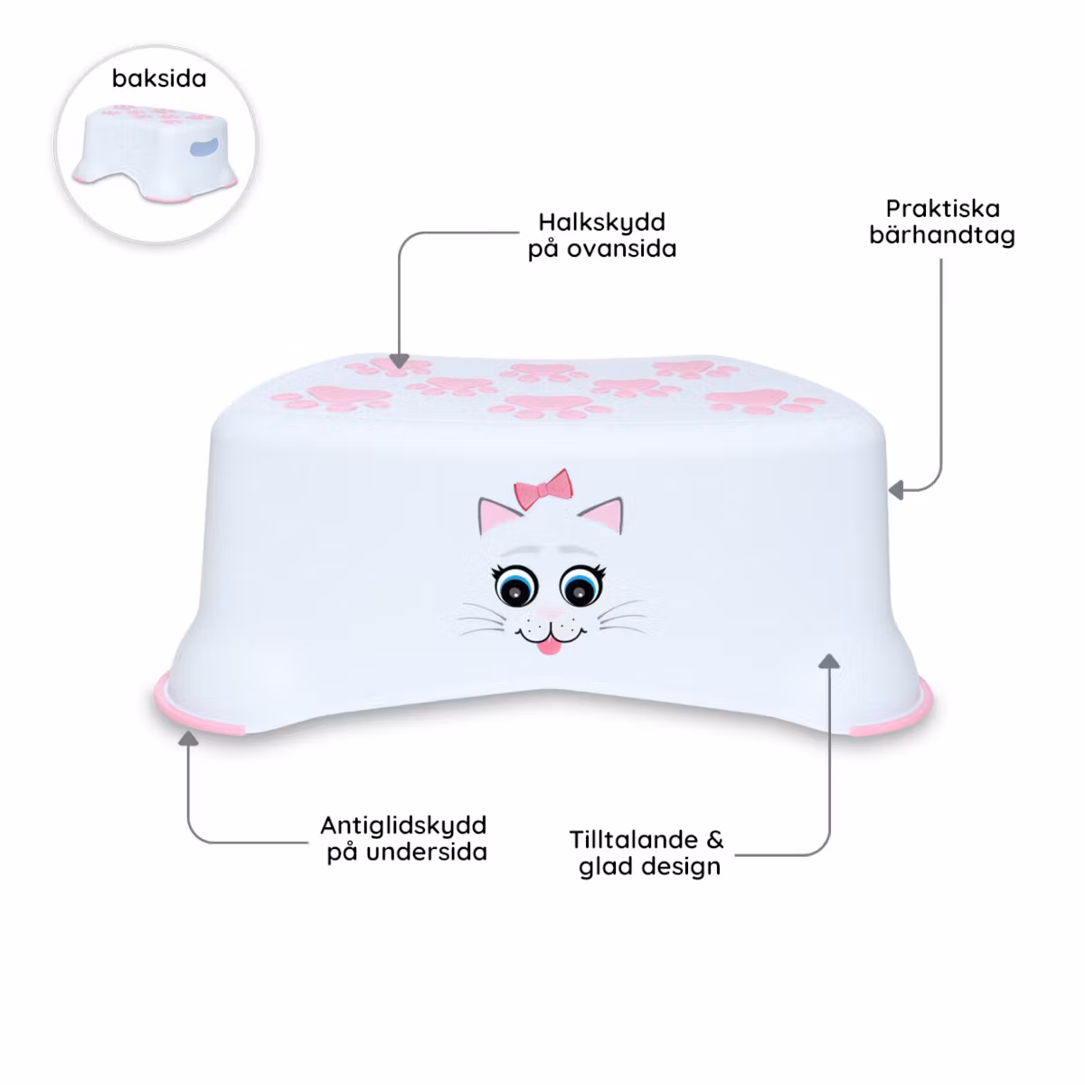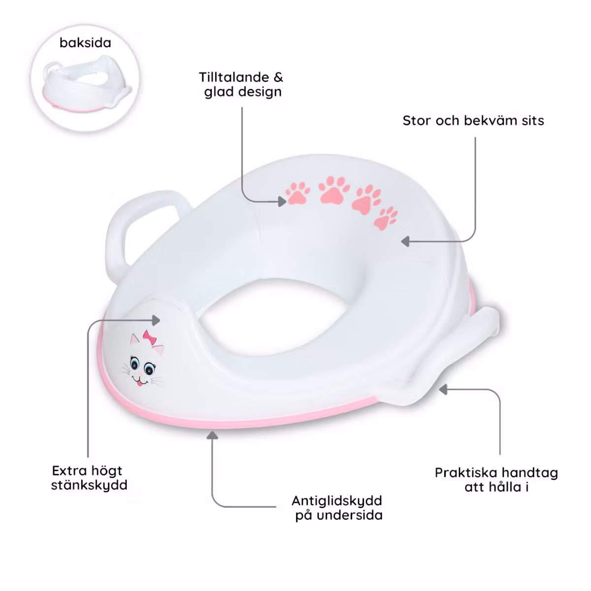 Vår fina toalettsits gör toalettbesöket roligare och bekvämare & vår fina pall till badrummet hjälper barnet att nå upp till både handfat och toalett.